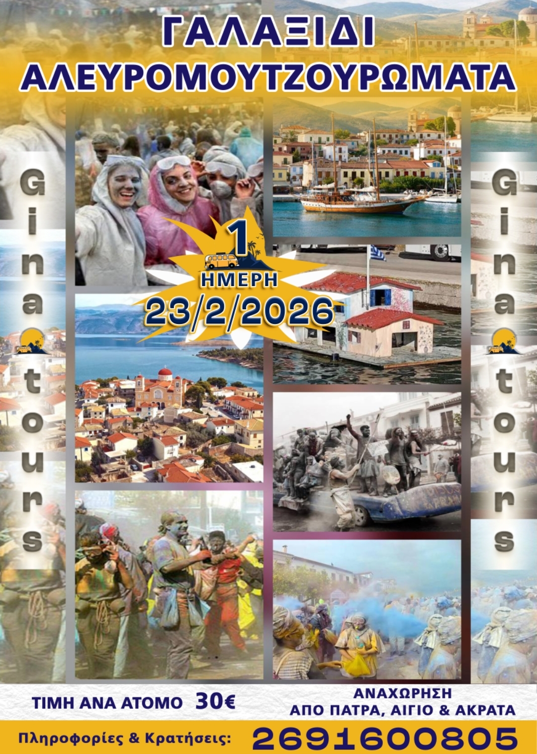 Αναχώρηση από Ακράτα 7.30 π.μ. Αίγιο 08:00 πμ και Πάτρα 8.30π.μ.