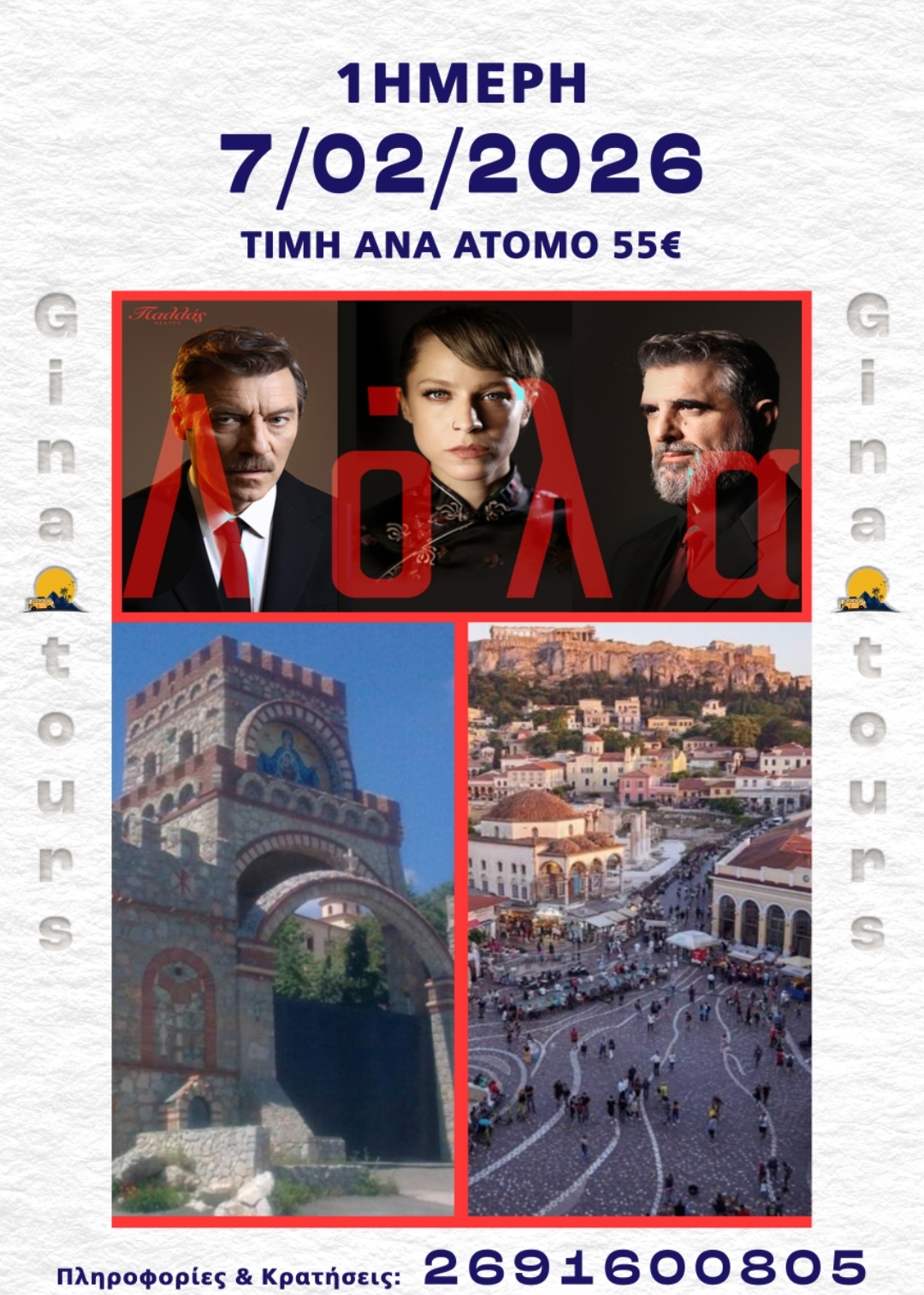 Το απόγευμα στις 17:30μμ αναχώρηση από την πλατεία Ασωμάτων για να μεταφερθούμε στο city link. Στο θέατρο Παλλάς και να παρακολουθήσουμε την παράσταση ΛΟΛΑ. Μια νέα «Λόλα» για το σήμερα